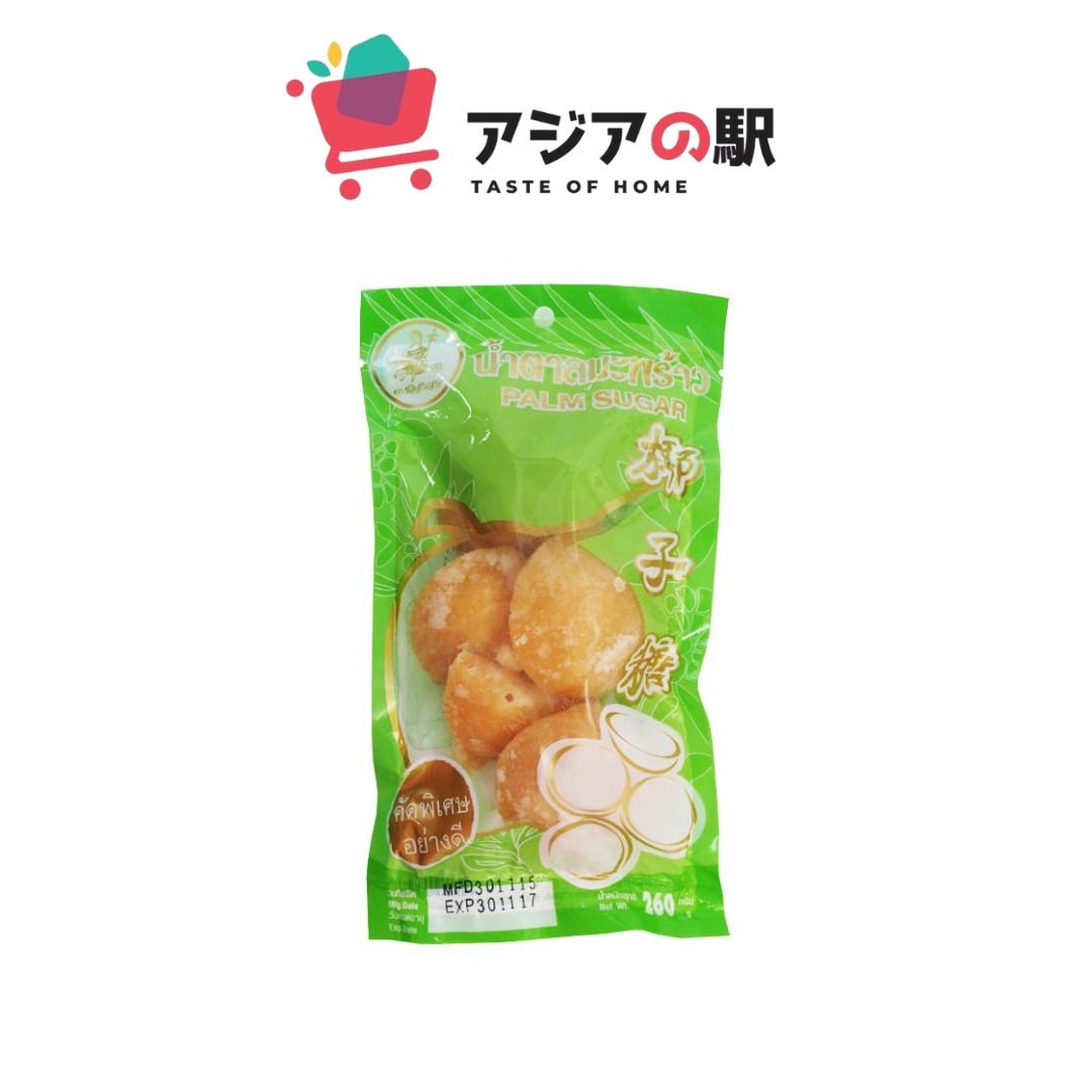**Palm Sugar(パームシュガー)**は、タイ料理に欠かせない天然の甘味料で、ヤシの木の花の蜜から作られた砂糖です。タイでは、パームシュガーはお菓子やデザートだけでなく、カレーやソースなど、様々な料理にも使用されています。甘さがまろやかで、ミネラル分が豊富に含まれているため、健康的な甘味料としても注目されています。