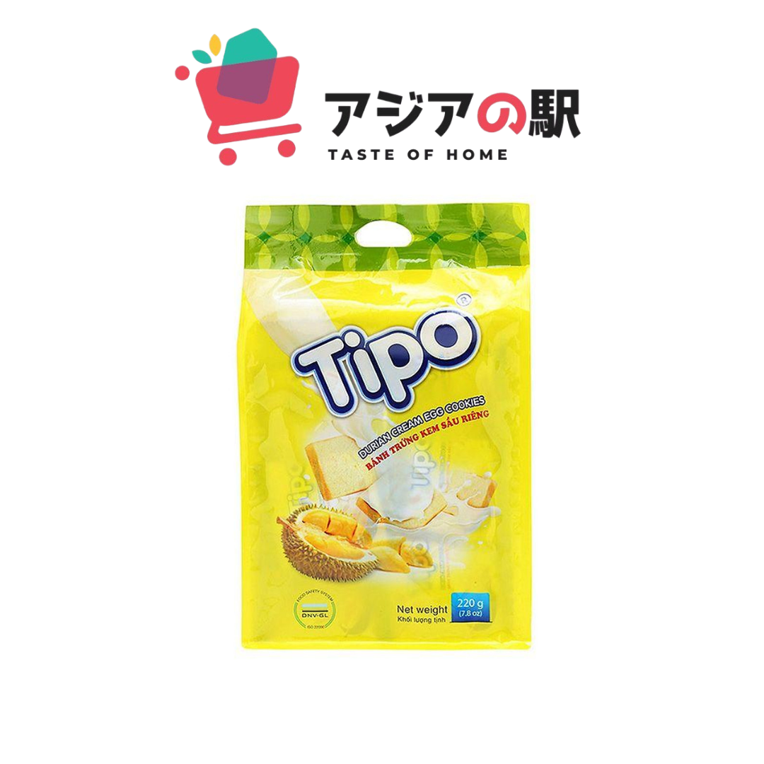 「TIPO クリーム・エッグ・クッキー ドリアン味 220g(パック)」は、アジアのエキで取り扱っています。ぜひベトナムの特別なスイーツをお試しください!