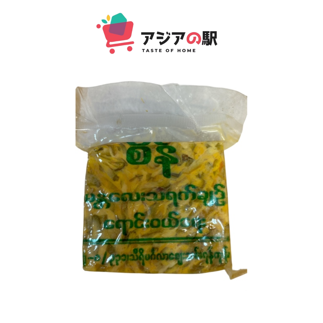 Myanmar Mango Pickle Chin(ミャンマー・マンゴーピクルス チン) は、ミャンマーの伝統的なピクルスで、熟したマンゴーを使って作られています。この料理は、ミャンマーの家庭やレストランで人気があり、食事にぴったりなアクセントとしてよく利用されています。