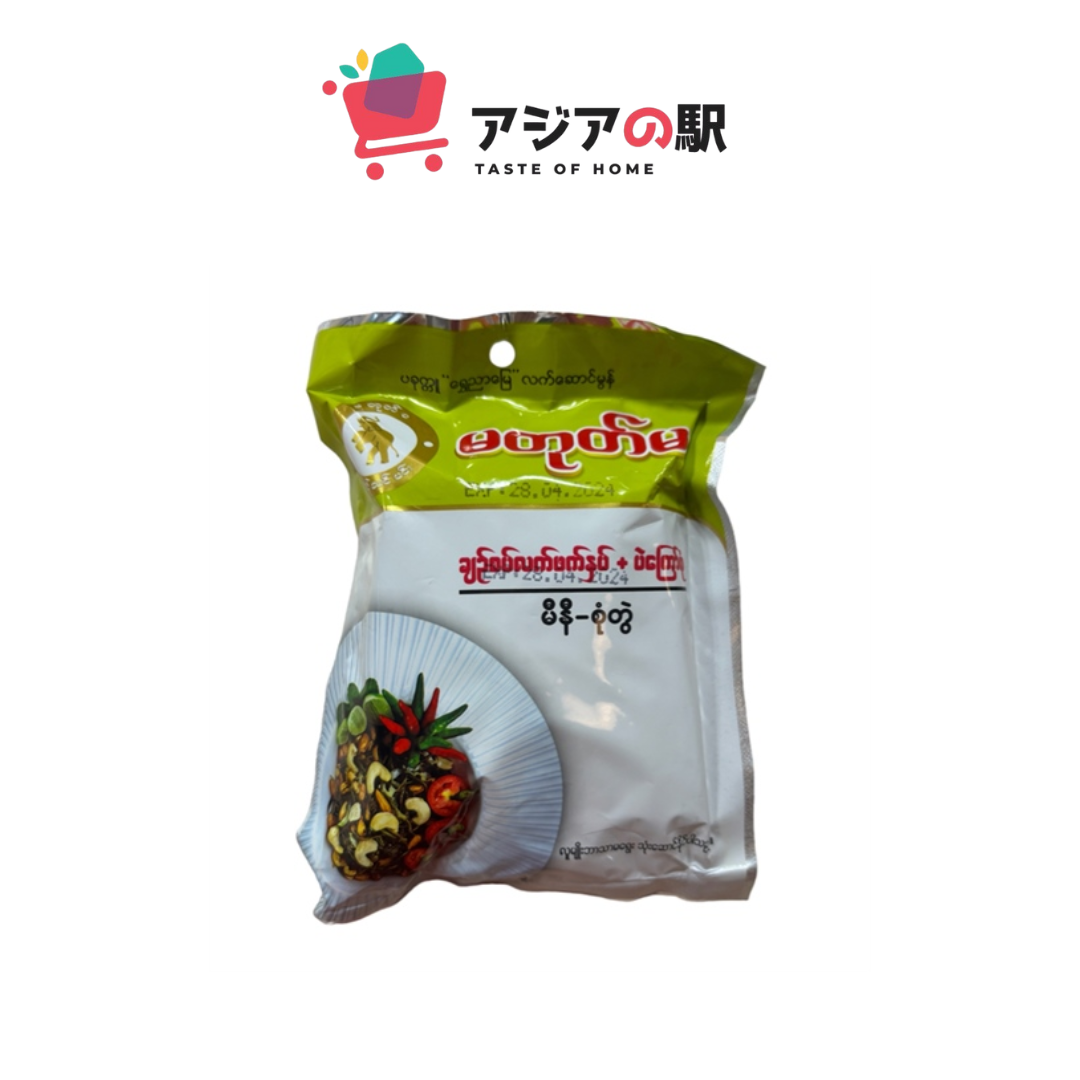この製品は、栄養価が高く、ミャンマーの食文化を反映しています。伝統的な食材を使用することで、自然な旨味と栄養を楽しむことができます。 -